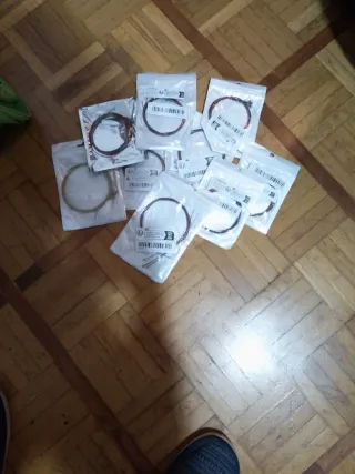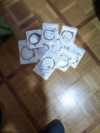 Conjunto de cuerdas para guitarra eléctrica. Los 9 juegos por 30€, si los quieres dímelo y te hago un anuncio para ti - Cuerdas de metal. - Color plateado y cobrizo.