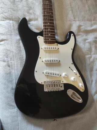 Guitarra eléctrica tipo Stratocaster marca XP. Cuerpo de madera maciza, diapasón de palisandro, mástil de arce, configuración de pastillas tipo SSS. Tiene alguna señal de uso normal. Se puede ver y probar sin compromiso, puedo enviar.