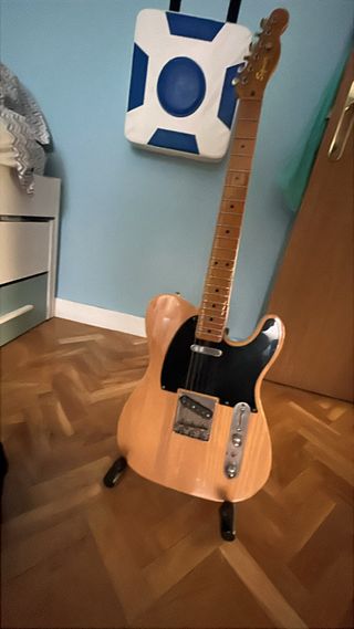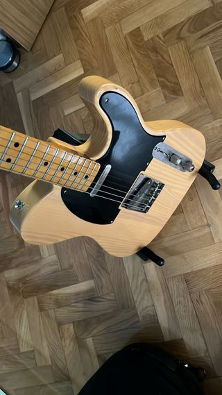 Guitarra eléctrica Squier Telecaster Classic Vibe. - Cuerpo de madera clara. - Golpeador negro. - Mástil de madera clara con diapasón de puntos. -Usada en conciertos