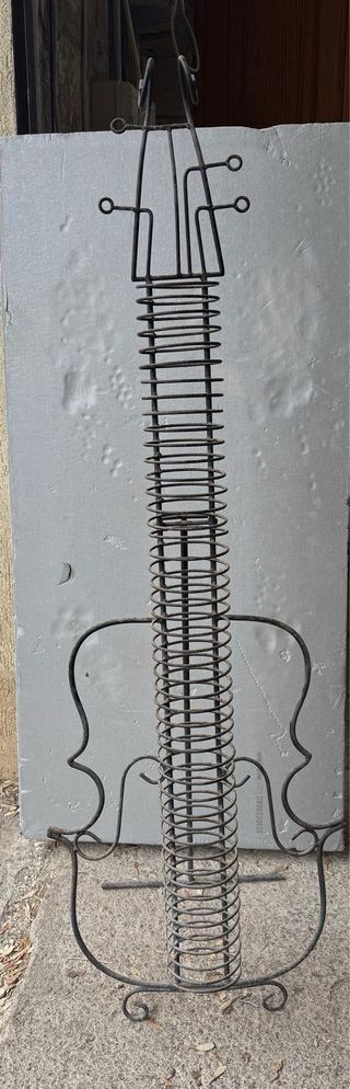 Original porta CDs con diseño de guitarra, perfecto para añadir un toque decorativo. - Fabricado en hierro. - Estructura en forma de guitarra. - Necesita quitar polvo.