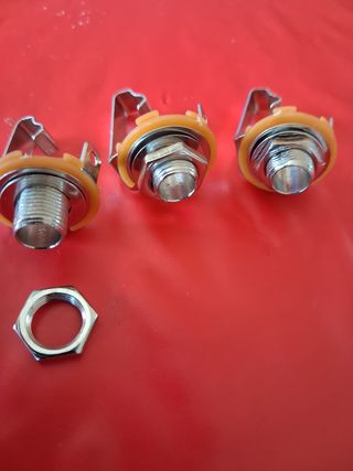 Tres jacks hembra para guitarra o amplificador. el precio es por los tres - Conexión de audio. - Material metálico.