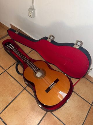 Guitarra clásica Alhambra en buen estado. Casi no se ha usado. Incluye soporte metalico. Ideal para aficionados. - Modelo Alhambra española. - Acabado en madera. - Incluye cuerdas. - Presenta detalles estéticos en la tapa. (Se pueden eliminar)