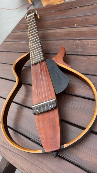 Guitarra Yamaha SLG200N (cuerdas de nylon), en estado casi nuevo, muy poco uso. Ideal para practicar en silencio con auriculares, viajar o grabar. Sonido excelente tanto con auriculares como conectada a amplificador o interfaz. • Modelo: SLG200N • Sistema electrónico Yamaha SRT • Mástil muy cómodo • Funda original Yamaha incluida • Siempre cuidada y guardada correctamente Entrega en mano posible / envío bien protegido. 💰 Precio: 590 € (ligeramente negociable)