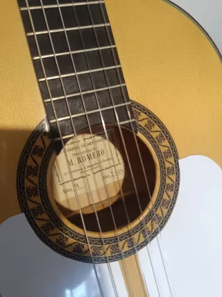 Guitarra flamenca artesana con un acabado brillante y natural, del Luthier Sevillano Oscar Romero. - Tapa abeto alemán - Aros y fondo ciprés macizo - Diapasón ébano - Previo Fishman americano La guitarra es de Septiembre del 2024, no hago cambios ni envío.