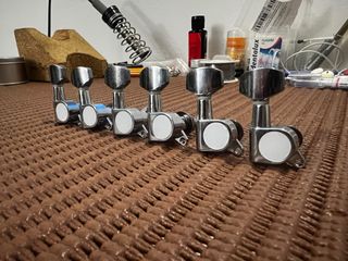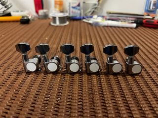 Set completo de clavijas de afinación (6 unidades) selladas fundidas a presión Válido para guitarras eléctricas tipo Stratocaster y tipo Telecaster Se incluyen todos sus tornillos A pesar de presentar algo de óxido algunas tuercas, las clavijas están nuevas y lubricadas, con sus plásticos aún ¡ Se realizan envíos ! Tags: pedal guitarra roland boss gibson epiphone fender squier ibanez marshall vox Gretsch Orange cort bc rich telecaster luthier NUX Harley Benton PRS Clapton Knopfler Frusciante Vai Satriani SRV Blug roja red Gallagher Eric Johnson Squire Tokai