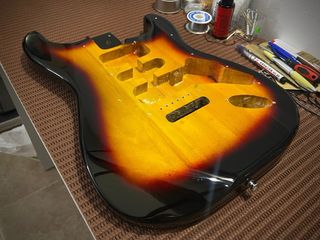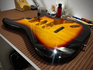Cuerpo de guitarra eléctrica tipo STRATOCASTER, de madera de tilo americano Acabado en color SUNBURST 3TSB (3 tonos) Brillante Ancho del zócalo -> 57mm Grosor del cuerpo --> 44mm Se incluye pickguard blanco de 3 capas, y tapa trasera blanca Se puede incluir puente trémolo nuevo, palanca vibrato y entrada jack por 12€ más ¡ Se realizan envíos ! Tags: pedal guitarra roland boss gibson epiphone fender squier ibanez marshall vox Gretsch Orange cort bc rich telecaster luthier NUX Harley Benton PRS Clapton Knopfler Frusciante Vai Satriani SRV Blug roja red Gallagher Eric Johnson Squire Tokai