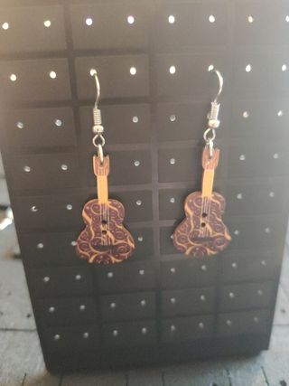 Pendientes guitarra madera marrón