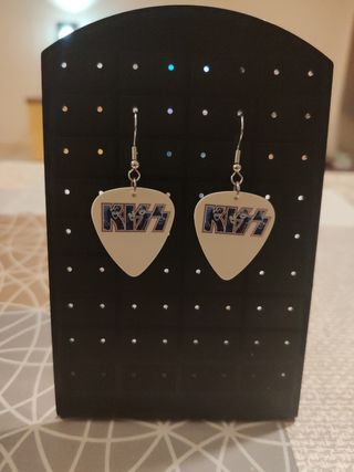 Pendientes hechos a mano de la banda kiss , hechos con una púa de guitarra. TAG:TESLA IRON MAIDEN METALLICA KISS OZZY BLACK SABBATH HELLOWEEN JUDAS PRIEST NIRVANA BON JOVI TESLAMOTORHEAD WAASP DICKINSON TESTAMENTVAN HALEN AVANTASIA EDGUY PANTERA SATRIANI EUROPE PRETTY MAIDS MOTLEY CRUE SAXON RAMONES ROLLING STONES STRATOVARIUS DIO DEEP PURPLE RAMMSTEIN SEPULTURA ACCEPT HALFORD SABATON QUIET RIOT CAVALERA GARY MOORE NIGHTWISH GAMMA RAY AVALANCH WARCRY ROSENDO LEÑO BARON ROJO ÑU SCORPIONS SOUNDGARDEN GUNS N ROSES SLASH BLIND GUARDIAN ROCK HEAVY LLAVEROS POP PUNK