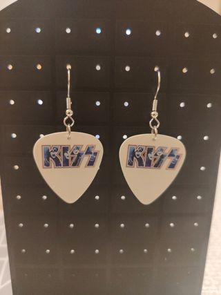 Pendientes de púa de de guitarra del Grupo de rock y heavy Kiss blancos.