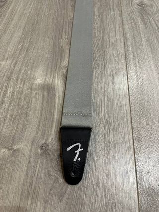 Correa de guitarra o bajo Fender Supersoft en color gris. - Material textil. - Detalle de cuero negro con logo Fender. - Hebillas metálicas.