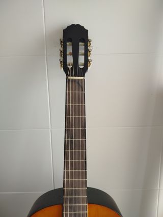 Esta en perfectas condiciones, un capricho más de mi hijo y que luego no usa. Regalo la funda que está en perfectas condiciones. Guitarra clásica negra con cuerdas de nylon. Ideal para principiantes o para quienes buscan un sonido cálido y suave. - Color: Negro brillante. - Cuerdas de nylon. - Marca: Yamaha.