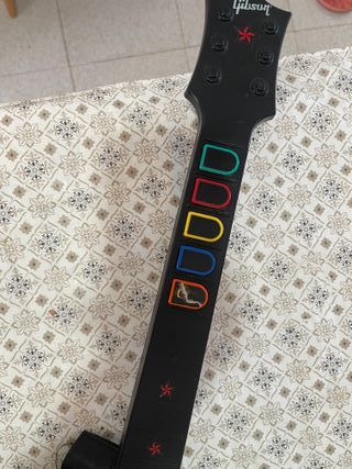 Guitarra negra para PlayStation. - Diseño inspirado en guitarra eléctrica. - Botones de colores y barra de rasgueo. - Conexión para consola.