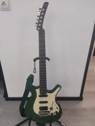 Guitarra + correa Ernie Ball - Cuerpo de fresno verde - HSS con selector de 5 posiciones, volumen y tono máster - Puente trémolo wilkinson/Fishman con sistema piezoeléctrico para sonido acústico, selector de 3 posiciones para combinar pickups con el piezo, y volumen de piezo (fishman powerchip) - Añado 2 selletas extra (muy difícil de conseguir) + set de cuerdas - Se incluye la tapa trasera Es una guitarra coreana, súper cómoda y versátil, y tan sólo pesa 3kg. Sin golpes ni arañazos importantes Se ajustó en luthier el encastre del mástil, pues aún bajando el puente al mínimo la cuerda aguda quedaba muy alejada.
