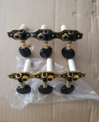 Nunca usados! Juego de clavijeros para guitarra clásica. Están diseñados con un acabado dorado y detalles en negro. Dispongo de muchas unidades