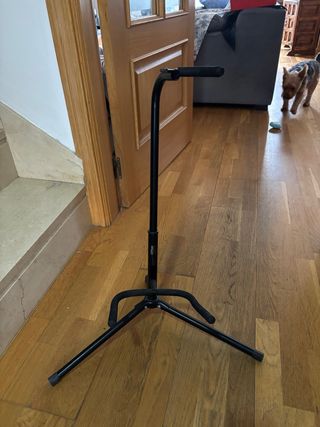 Soporte plegable para guitarra, ideal para transportar y almacenar tu instrumento. - Color negro. - Diseño de trípode estable. - Altura ajustable.