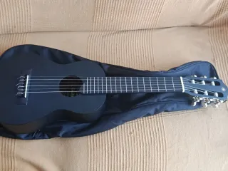 Guitarra clásica de tamaño reducido, ideal para iniciarse en la música. - Cuerpo de madera clara. - Diapasón con trastes marcados. - Cuerdas de nylon.