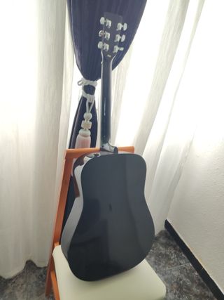 Guitarra acústica Harley Benton en color negro. - Cuerpo con cutaway. - Acabado brillante. - Mástil de madera oscura. Le faltan las cuerdas por falta de uso