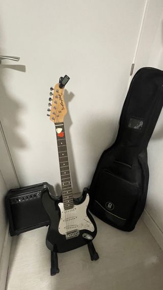Guitarra Eléctrica Fender con Ampli y Soporte