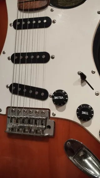 Guitarra eléctrica Squier Stratocaster con acabado Sunburst. Pastillas y electrónica nuevas - Cuerpo de madera. - Mástil de arce. - Diapasón de palisandro. - Tres pastillas. - Controles de volumen y tono. También cambio por epiphone sg