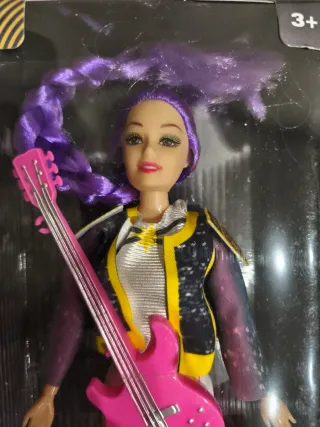 Muñeca de la película K-Pop Demon Hunters, personaje Rumi. - Incluye guitarra rosa. - Cabello morado largo. - Chaqueta con diseño. - 30 cm aprox. - Edad recomendada: 3+ años. - Envío rápido.