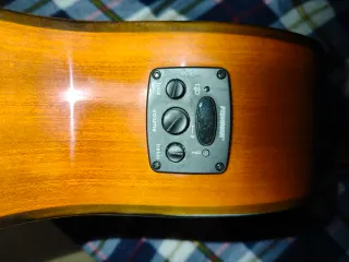 Guitarra Admira Indiana con preamplificador AP-40. - Preamplificador Admira AP-40. - Pantalla digital. - Control de volumen. - Controles de ecualización (Bass, Middle, Treble). - Botón de afinador (Tuner). - Indicador de batería (Batt.).