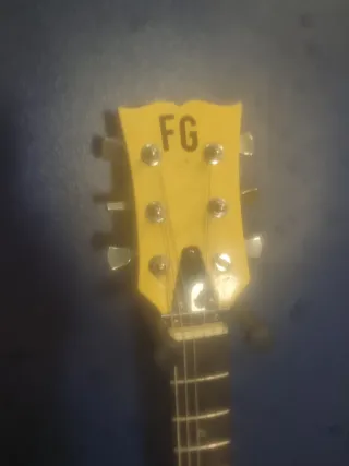 Guitarra eléctrica con un acabado degradado Sunburst, que va del marrón al negro. - Cuerpo de madera con acabado brillante. - Mástil de madera clara. - Tres pastillas. - Puente metálico. - Dos potenciómetros y selector. (Le falta una cuerda, la primera. Pero se le pueden poner sin problema y no cuesta mucho)