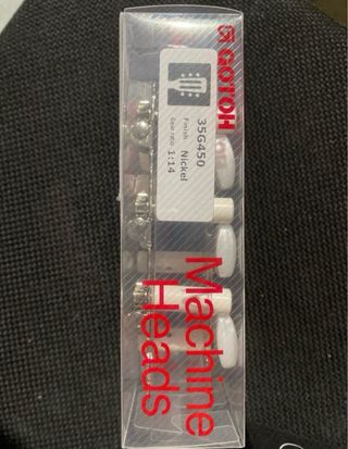 Set de clavijeros Gotoh para guitarra. Incluye los elementos necesarios para la instalación. - Marca: Gotoh - Tipo: Clavijeros para guitarra - Acabado: Metálico - Incluye botones blancos