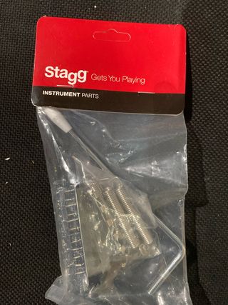 Paquete de piezas para instrumentos musicales de la marca Stagg. - Incluye varias piezas metálicas y de plástico. - Viene en un empaque sellado.
