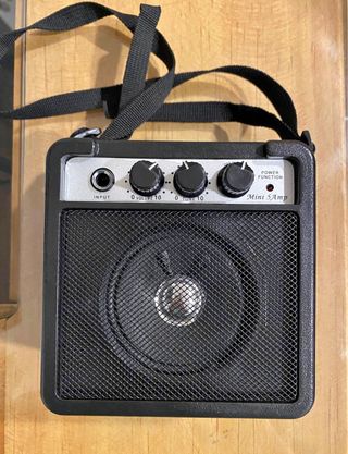 Amplificador compacto para guitarra, modelo Mini 5 Amp. -Entrada para instrumento. - Control de volumen. - Control de tono. - Asa para transporte.