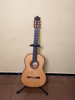 Guitarra artesana por luthier jose mª palmero de San Fernando (Cádiz).modelo gades 1A Tapa de cedro macizo con cipres seleccionado y más de 25 años de secado. Construcción tradicional cuidada al detalle, con gran estabilidad y proyección. Tiro largo 660 mm. Altura de cuerdas: 7,5 mm en puente y 2,5 mm en traste 12. Sonido equilibrado, respuesta rápida y gran comodidad. Instrumento nuevo, sin uso, pensado para tocar muchos años...