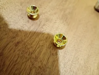 Guitarra Electrica Esta super ajustada, ningun imperfecto Estilo Jackson Dinky Color Madera/Amarillo Marca Acepro Con sistema Gotoh: Puente flotante Gotoh GE1996T y palanca Resortes gotoh Cejuela de bloqueo Gotoh de anclaje por arriba (41mm) Pastillas EMGHZ con sistema de anclaje (no soldadura) Inlays diente tiburon Apantallada con cobre Mastil de 24 trastes Cuerpo Carved Top y flameado Mastil delgado Mastil Atornillado estilo JEM Clavijas de bloqueo Hardware negro Sistema gotoh completo puente y cejuela in por 120€ Guitarra sin Gotoh 170€