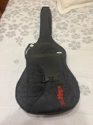 Funda negra para guitarra con el logo Summer en color rojo. Protege tu instrumento con estilo. - Cierre de hebilla. - Correa ajustable. - Se vende todo en conjunto