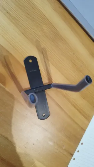 Soporte de pared para guitarra de la marca SAMBA. Diseñado para colgar tu instrumento de forma segura. - Fabricado en metal negro. - Incluye protectores de goma en los brazos.