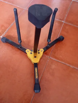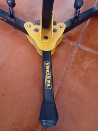 Soporte para guitarra de la marca HERCULES. - Color negro y amarillo. - Diseño plegable.
