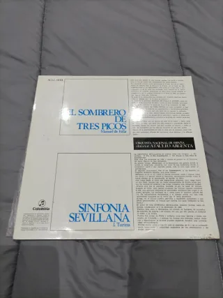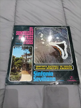 Disco de vinilo con Sinfonía Sevillana de Turina y El Sombrero de Tres Picos de Falla. - Orquesta Nacional de España. - Director: Ataulfo Argenta. - Sello: Columbia. - Referencia: SCLL 14001. - Formato: Estéreo.