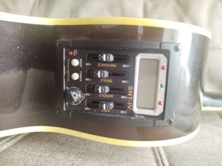 Guitarra Electroacústica con sistema de ecualización SNT-IV incorporado y afinador. - Ecualizador con controles de presencia, treble, middle y bass. - Pantalla digital para afinador integrado. - Botones de modo y potencia. . Funda blanda de regalo (ver fotos) Restaurada por Luthier (Doppelganger Guitars) en Madrid.
