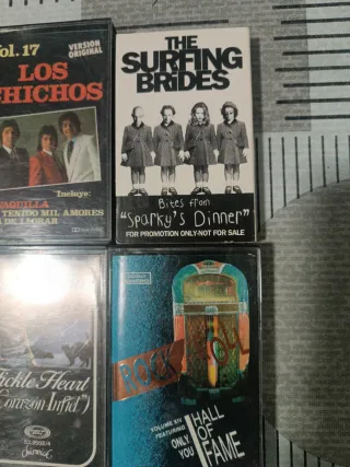 Lote de cintas de casete con música variada. Incluye artistas como Miguel Ríos, Los Chichos y The Surfing Brides. - Lo mejor de Miguel Ríos - El rock de una noche de verano en la frontera - Miguel Ríos - La huerta atómica - Miguel Ríos - Vol.17 - Los Chichos - The Surfing Brides ( perfecto estado ) - Fickle Heart (Corazón Infiel) - Sniff'n'the Tears - Sparky's Dinner - Bites From - La Familia Pepperoni - El Vaquilla