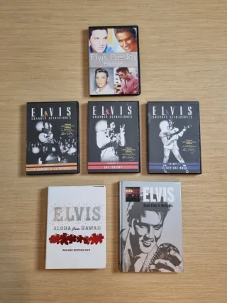 Lote de DVDs de Elvis Presley: -En buen estado, funcionan correctamente -Ideal para coleccionistas -Todos los discos están en sus cajas originales - 5 DVDs + 1 CD (From Elvis In Memphis) Títulos de los DVDs: Elvis Presley Forever, Grandes Actuaciones (3 volúmenes) y Aloha from Hawaii Deluxe Edition