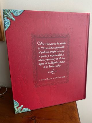 Es un libro precioso para los amantes de los dragones. Tapa dura. En las hojas tiene pequeños libritos para pasar las hojas. También tiene muestras de piel de dragones para tocar, etc. Editorial Random House Mondadori, 2004. Se encuentra como nuevo. Libro muy muy bonito.