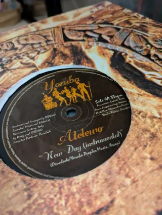 Vinilo 12" deep house Atelewo. - Título: New Day (vocal) - Sello: Yoruba Records - Percusión: Roberto Rosi - Programación de batería: Atclewo - Flauta/Saxofón: Alessandro Meroli - Voces/Rhodes: Osunlade