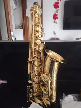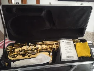 Saxofón alto de color dorado, sin estrenar y listo para tocar. Incluye todos los accesorios necesarios para su uso. - Acabado brillante. - Incluye funda, kit de limpieza y soporte