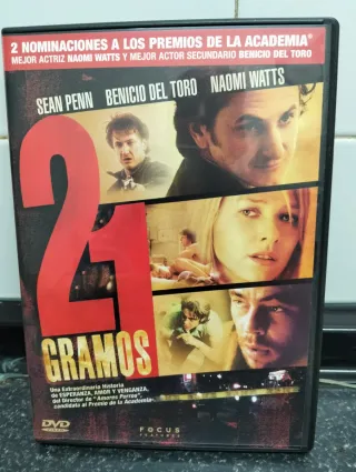 Película 21 Gramos en formato DVD. Una historia de esperanza, amor y venganza. - Nominada a 2 Premios de la Academia. - Actuaciones de Sean Penn, Benicio del Toro y Naomi Watts. - Dirigida por Alejandro González Iñárritu.pelicula nueva estaba preguntanda solo se a probado y visto media hora de película DVD está nuevo
