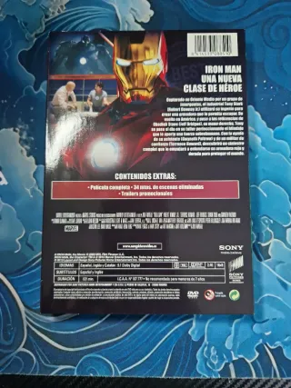 Vendo Iron Man (película en DVD) en muy buen estado. Disco perfecto, sin rayaduras, funciona sin problema. Incluye carátula original. Reparto: Robert Downey Jr., Gwyneth Paltrow, Jeff Bridges, Terrence Howard. Ideal para fans de Marvel o coleccionistas. Listo para ver en tu reproductor o consola. Precio: 10 € (negociable)
