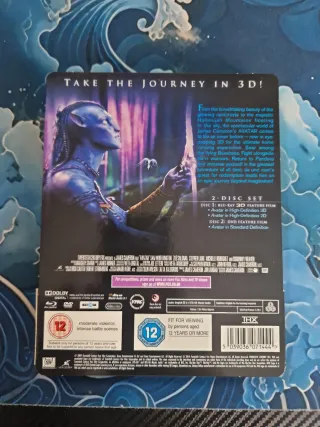 Edición especial de la película Avatar. - Incluye disco Blu-ray 3D. - Incluye disco Blu-ray. - Incluye disco DVD. - Clasificación por edades: 12 años. Avatar – Blu‑ray 3D + Steelbook en muy buen estado Descripción: Vendo **Avatar (James Cameron) en formato Blu‑ray 3D + Steelbook en muy buen estado. Discos sin rayaduras, funcionan perfectamente. Edición con Blu‑ray 3D + Blu‑ray estándar en estuche metálico (Steelbook). Ideal para coleccionistas o fans de ciencia ficción y cine en alta definición. 📀 Formato: Blu‑ray 3D + Steelbook 🎬 Película: Avatar 🕹️ Estado: Muy buen estado, sin rayaduras Precio: 30 €
