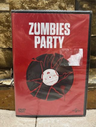 Película de terror Zombies Party en formato DVD, completamente nueva y precintada. - Carcasa roja con diseño llamativo. - Incluye disco de película.