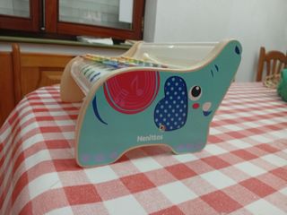 Xilófono de madera para niños pequeños, ideal para iniciarse en el mundo de la música. Está en muy buen estado y es perfecto para regalar. - De la marca Nenittos de Juguettos. - Diseño de elefante. - Incluye un palo para tocar. -madera y plástico.