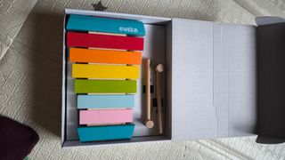 Xilófono de madera con barras de colores vibrantes. Incluye dos mazos para tocar. - Desarrolla habilidades motoras finas. - Introduce los colores. - Fomenta el pensamiento lógico. - Ayuda al desarrollo de habilidades sociales.