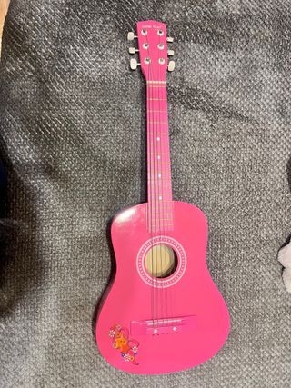 Guitarra acústica de color rosa, ideal para niños. Presenta un diseño llamativo y es perfecta para iniciarse en la música. Tiene algún escorchon. - Marca: El corte inglés - Color: Rosa - Tipo: Acústica