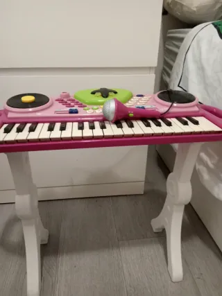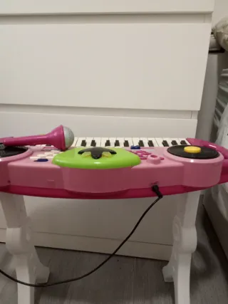 Piano de juguete rosa con micrófono