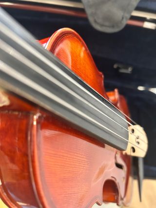 Violín de tamaño 1/8, ideal para los más pequeños. Está como nuevo. ha tenido un uso de 5 meses. Ya le tocaba otro más grande - Acabado brillante y atractivo. - Incluye estuche y arco. - Marca: Elisabet THYME. Nuevo vale 180€